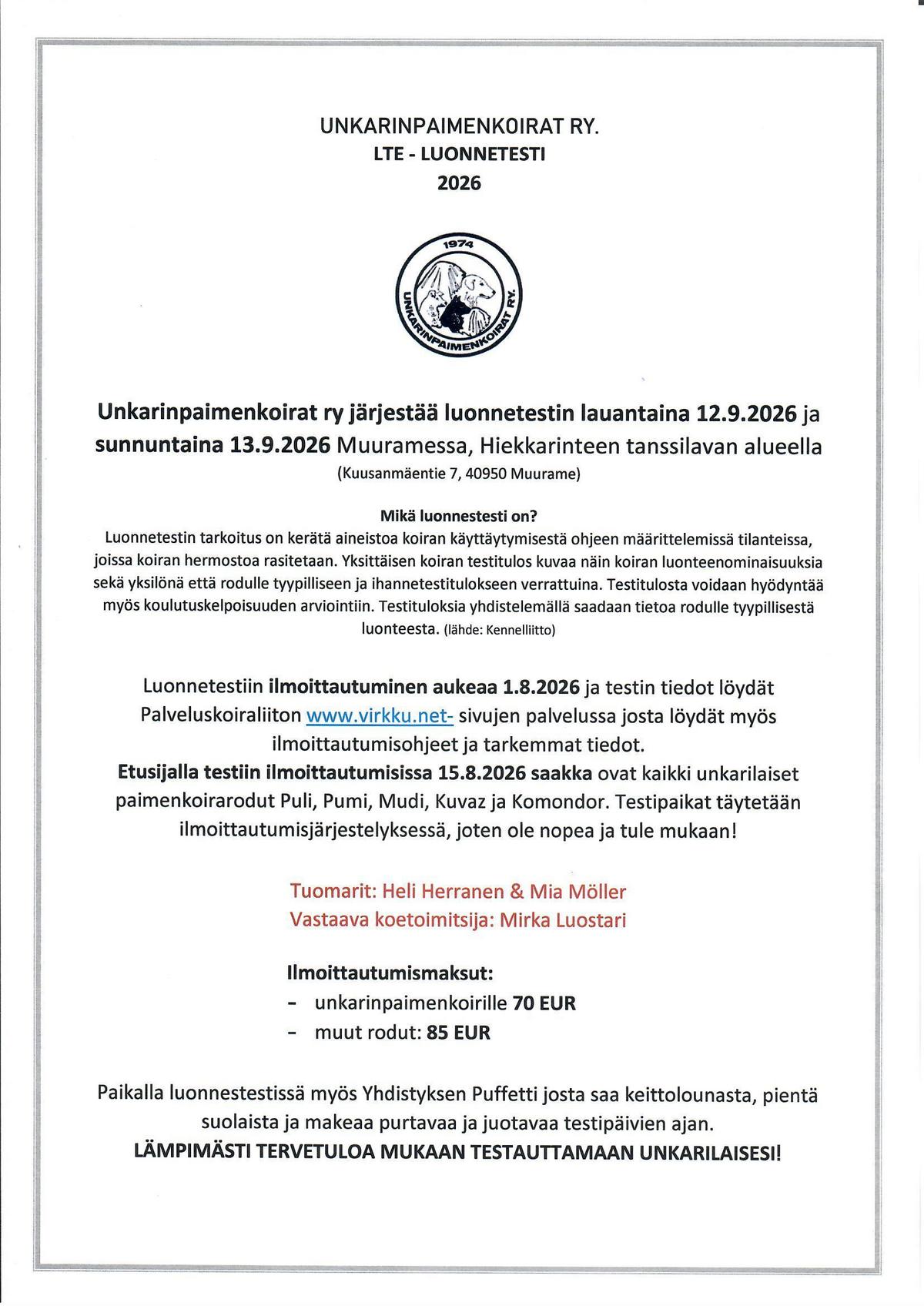 Unkarinpaimenkoirat ry:n tietosuojaseloste GDPR